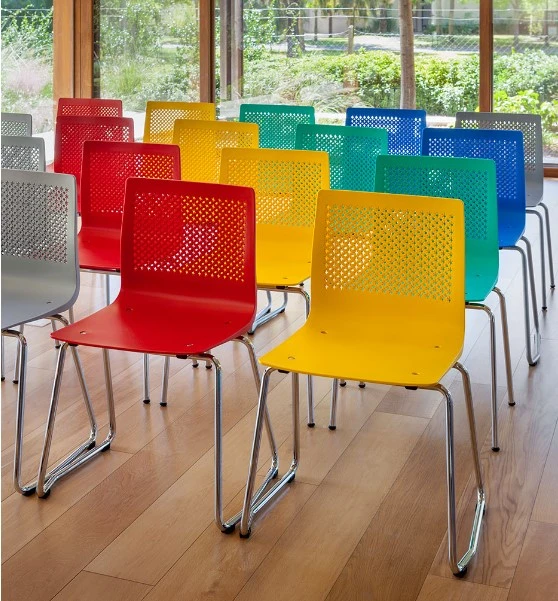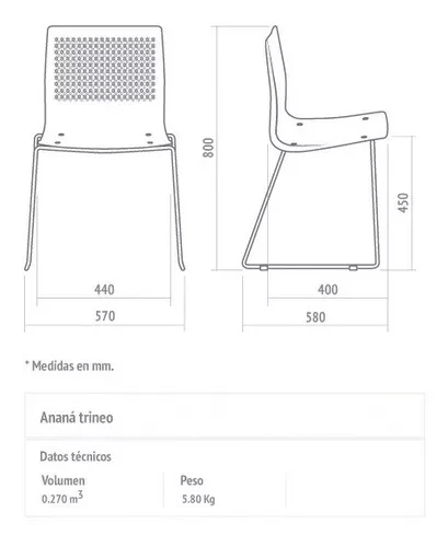 Base Trineo de caño pintado con pintura epoxi y monocasco inyectado en polipropileno.