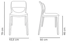 Silla realizada en monocasco de homopolímero reforzada sin apoyabrazos.