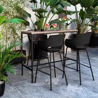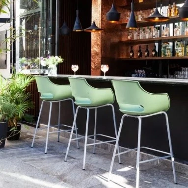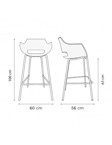 Taburete con monocasco en polipropileno y base de caño pintada.